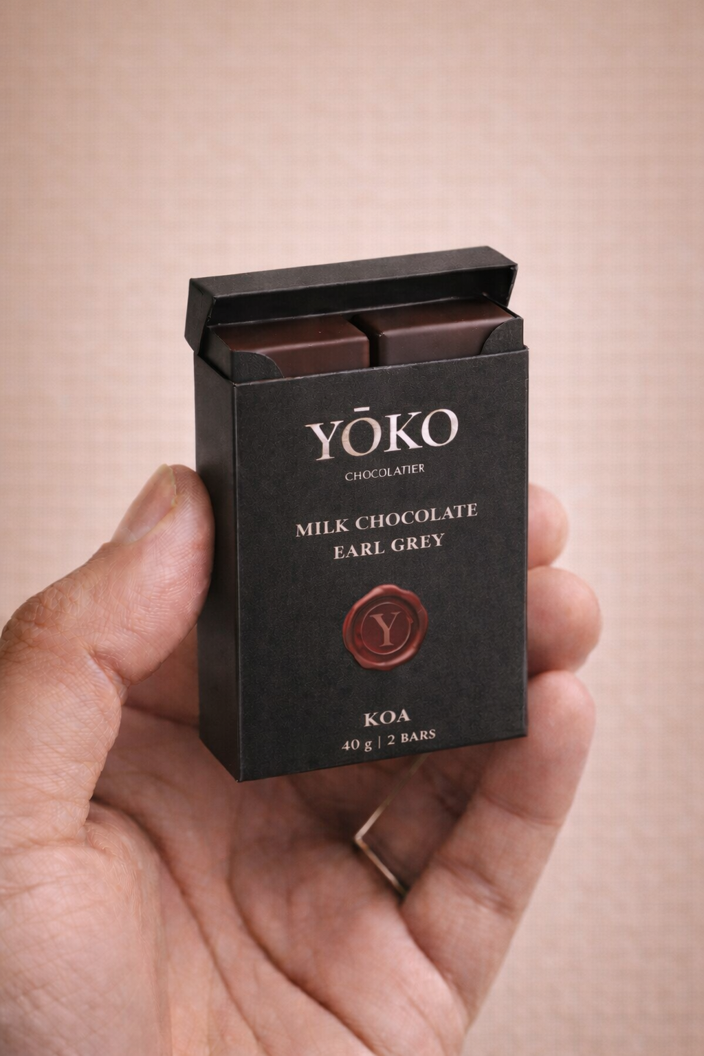 KOA introduce the New chocolate bar in collaboration with YOKO chocolatier. The package comes with two bars each is 40gm.